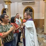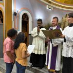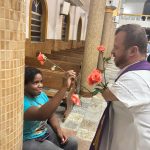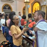 Ao final da Missa presidida pelo Pároco e Prior local, Fr. Gustavo Tubiana, juntamente com Fr. Alex Sandro Rodrigues, coordenador paroquial da catequese e orientador das Mães Mônicas, todos fizeram a oração de Santa Rita e receberam a benção das rosas.