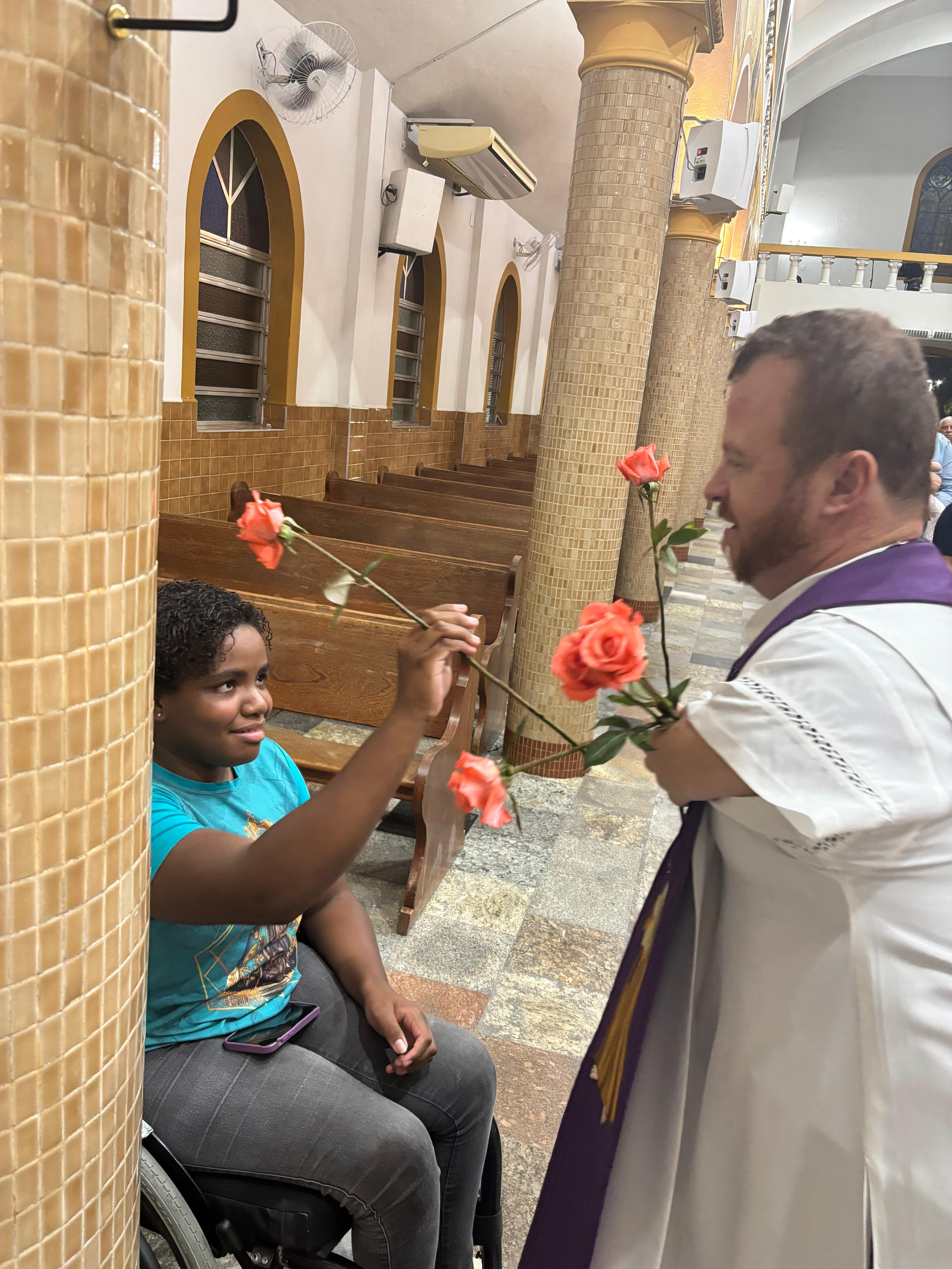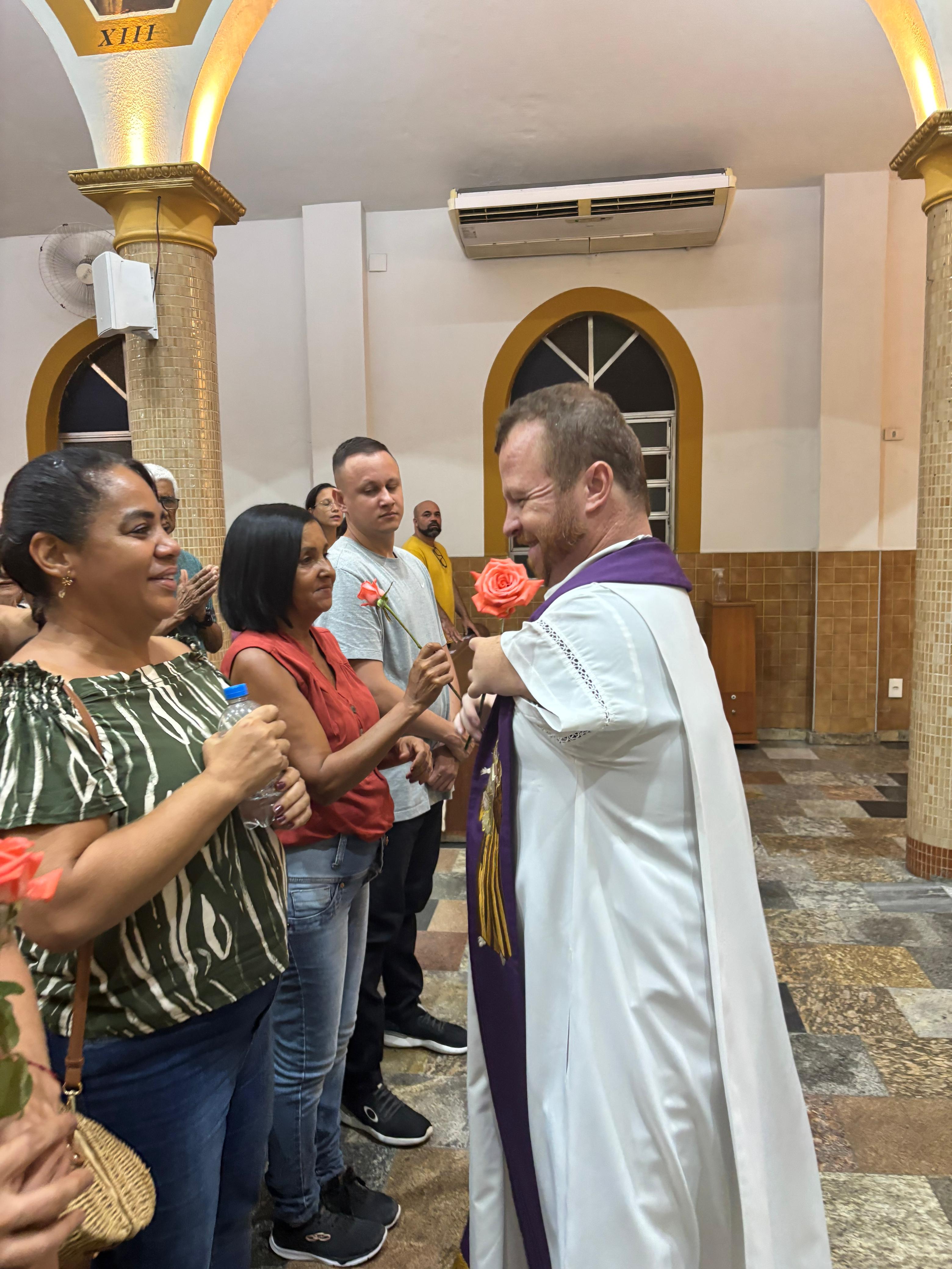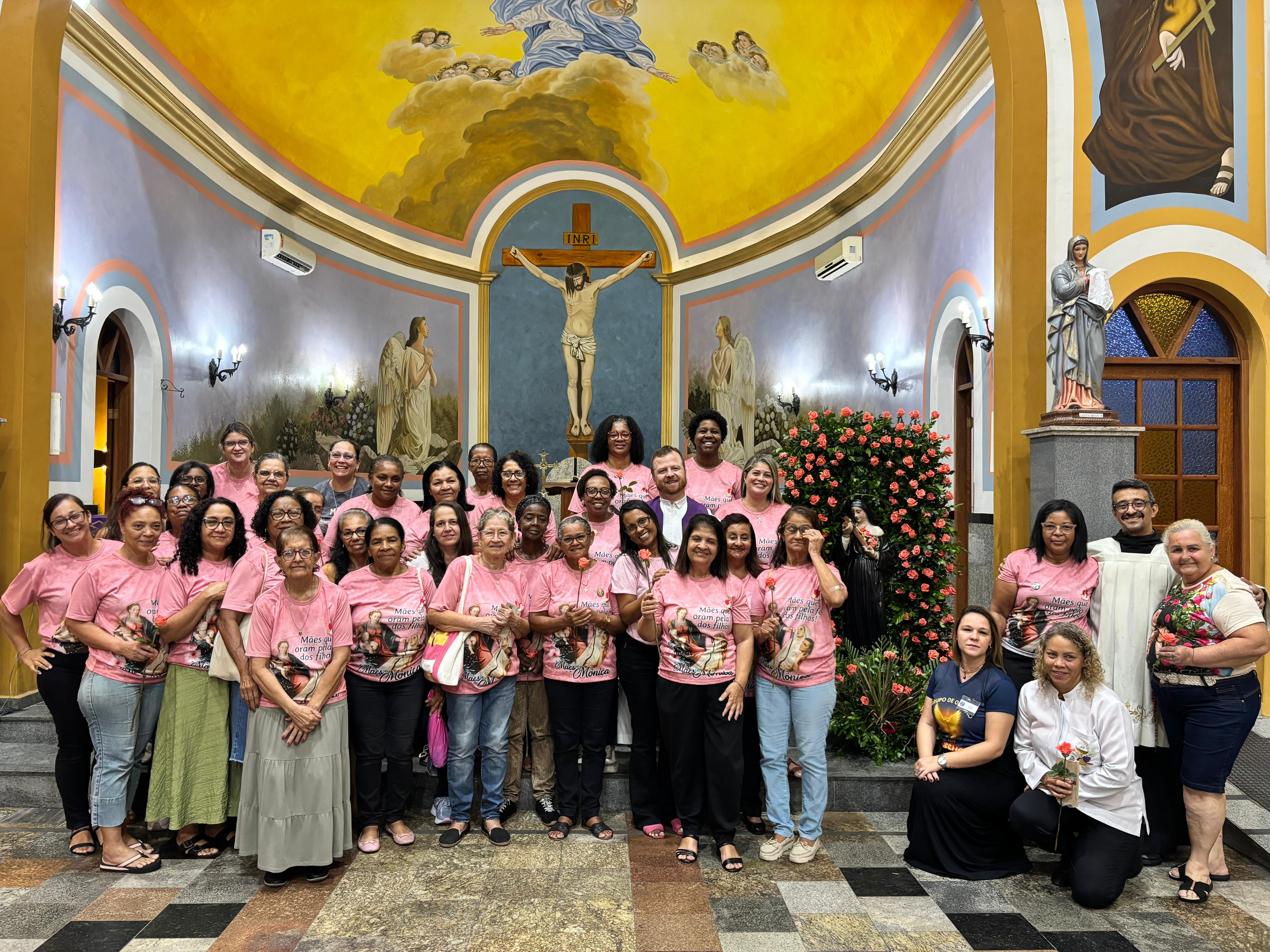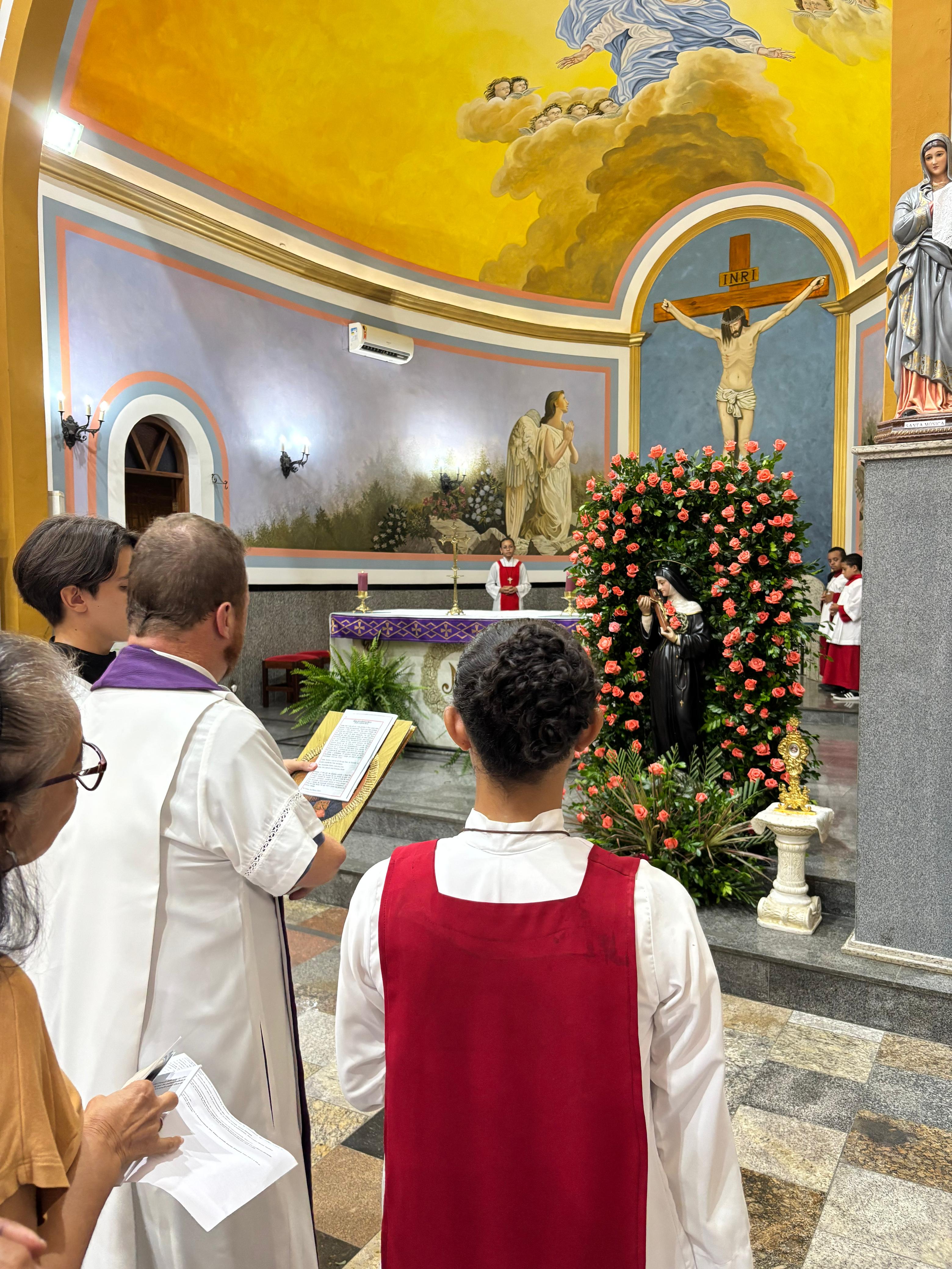 Ao final da Missa presidida pelo Pároco e Prior local, Fr. Gustavo Tubiana, juntamente com Fr. Alex Sandro Rodrigues, coordenador paroquial da catequese e orientador das Mães Mônicas, todos fizeram a oração de Santa Rita e receberam a benção das rosas.